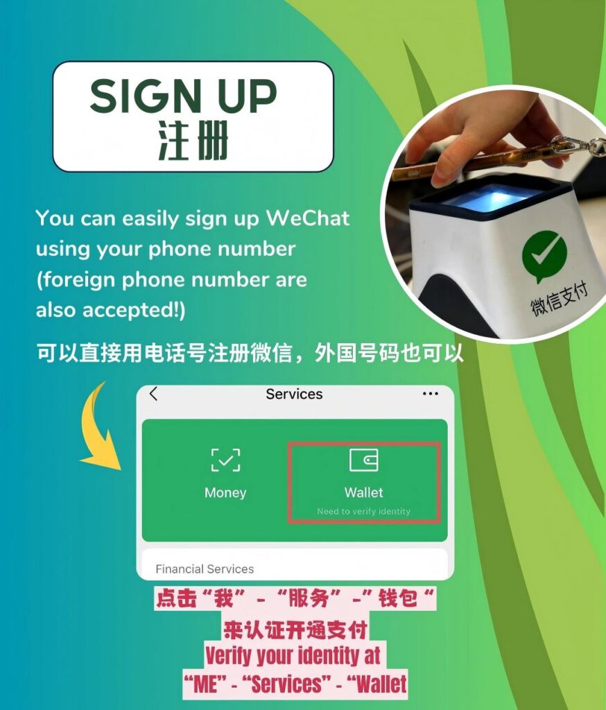 – Merchant scans your code: Open WeChat, tap “Services” > “Pay” to display your personal QR code. The merchant will scan this code, and the payment amount will be deducted from your international card automatically.